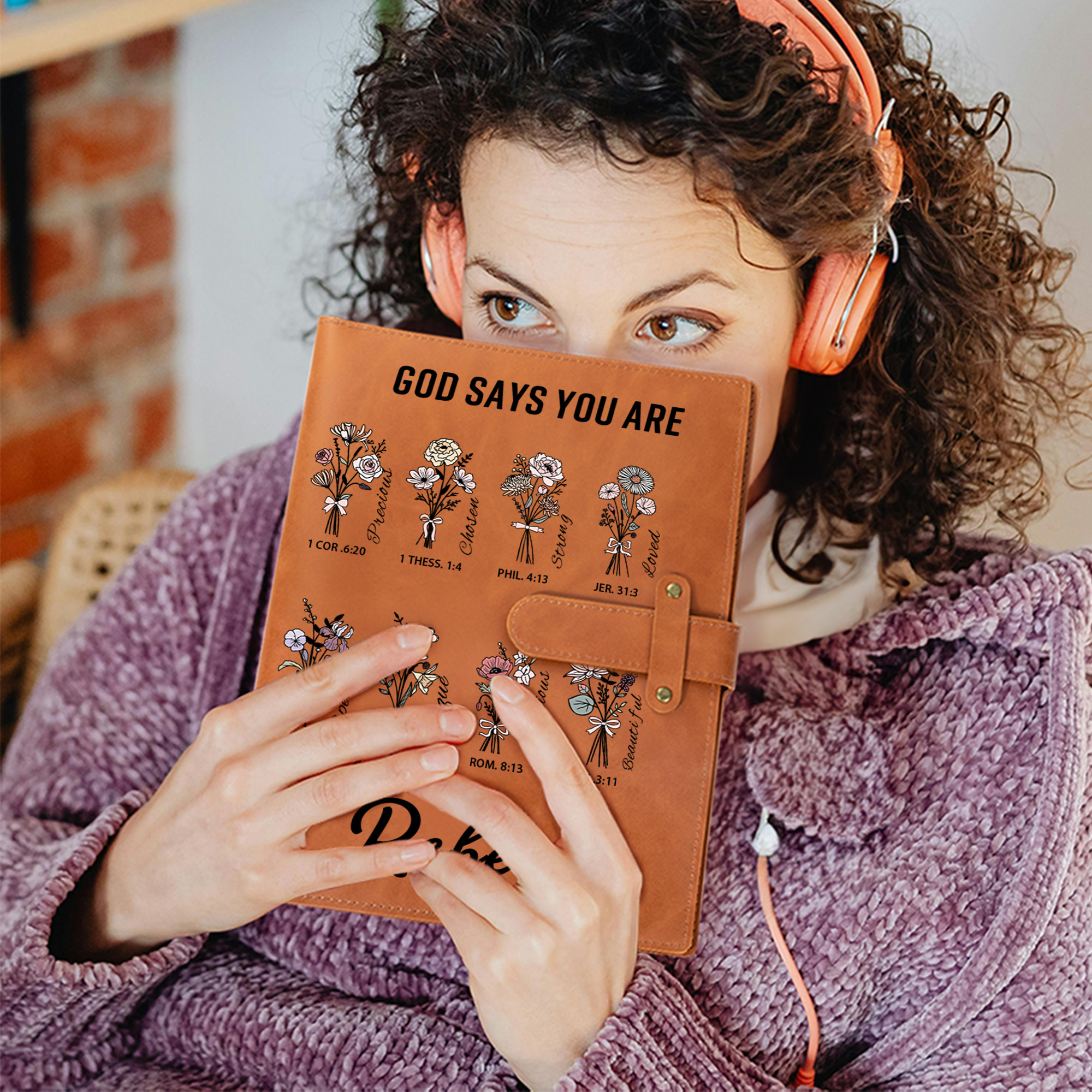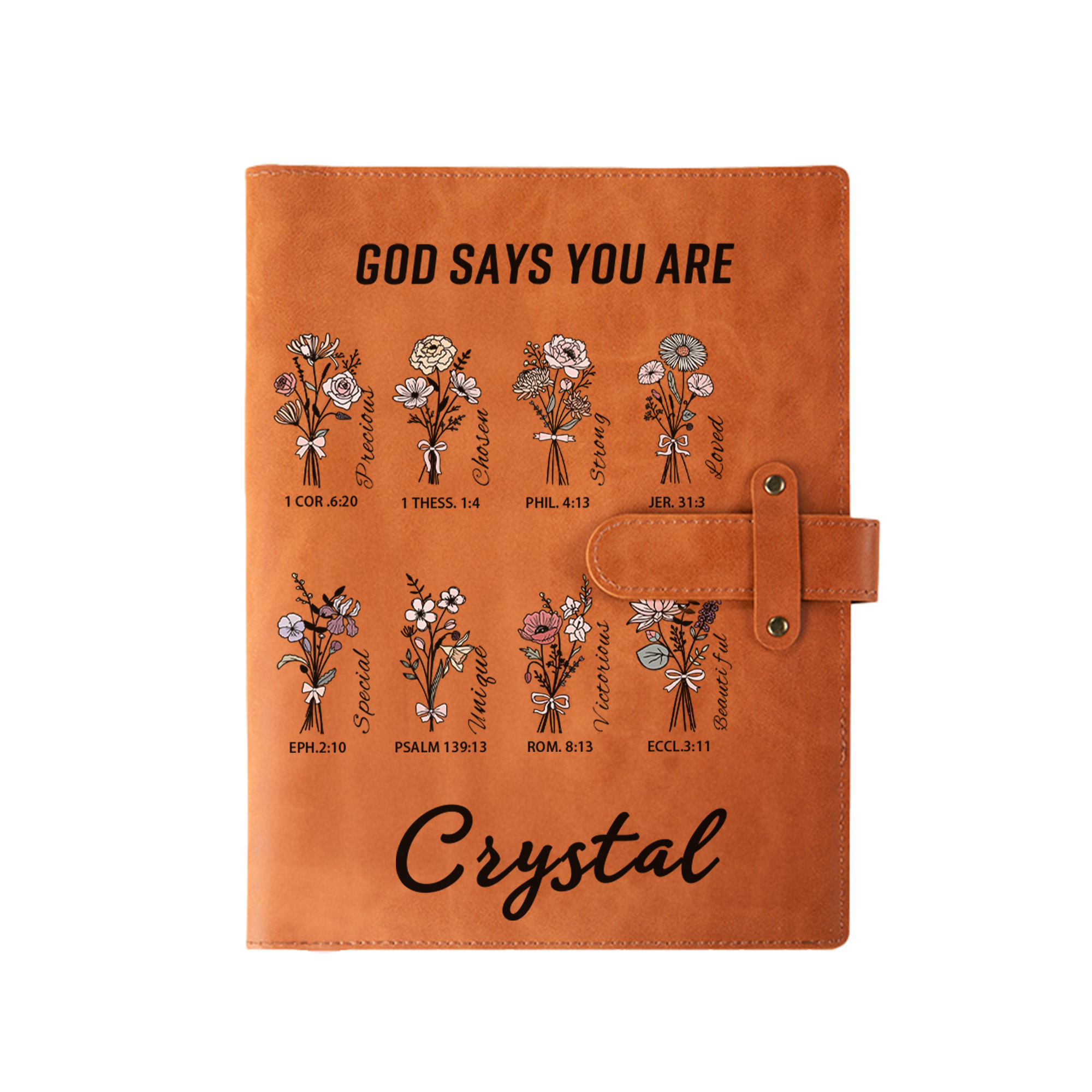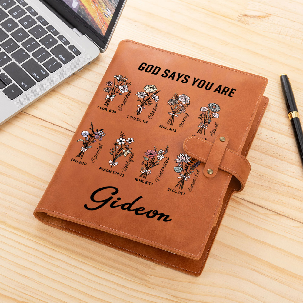 Floral & Bible Verse Design - This notebook cover features delicate floral details paired with "God says you are" Bible verses, offering a touch of inspiration and beauty to everyday writing or sketching.